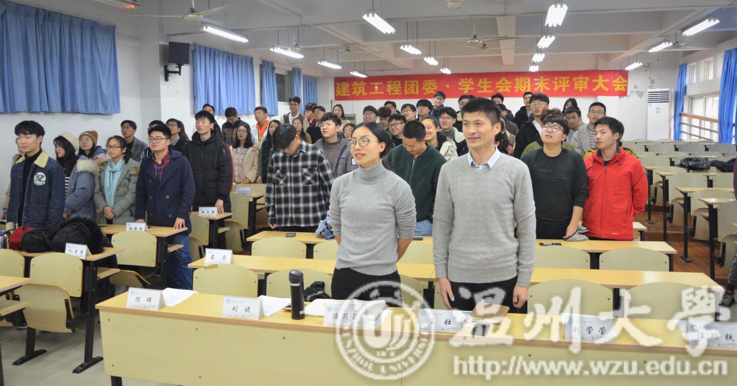 大会伊始,全体与会人员奏唱建工之歌。紧接着,王老师行讲话,他首先充分肯定并表扬了同学们这一学期的工作与学习,并对大家寄予了美好期望,希望在新的一年里同学们能够更好地提升自我能力、收获好成绩。在热烈的掌声中,大会进入第三项议程,学生事务中心、“追筑”创客管理与服务中心、造价协会、未来建筑师之家、测绘协会、青木社等组织进行了工作汇报,对本学期的工作进行自我评价,并对未来进行规划与展望。大会第四项议程由优秀班级代表17建筑班班长、17土木3班团支书进行班级展示,两位班级干部结合ppt生动地阐述了如何能够帮助班级更为出色,凝聚力是其中必不可少的一环。大会第五项议程,由通过初审的团学成员进行本学期工作展示,并通过微信投票、主席团打分最终评选出1位星级部长:青年志愿服务部赵康慧;4位星级干事:组织部施剑锋、校友与就业部顾芷怡、青年志愿服务部杜保臣、素拓实践部夏南燕。优秀的个人也离不开团体的帮助,本次五个5个星级部门分别是:办公室、青年志愿服务部、编辑部、文体部以及素拓实践部。在大家的掌声与祝贺声中学生会主席刘晓进行工作总结,并对下学期工作提出了美好展望。团委书记潘莉莉老师的一席话更是让现场气氛更为活跃,其中蕴含着对同学们学习和生活的关怀以及殷切期望。部长们都进行了踊跃地发言,或是表达了对干事的鼓励与支持,或是指出了下学期部门工作的目标与方向。在最后万众瞩目的颁奖时间里,团委副书记李子巧、学生会主席刘晓、辅导员刘莹莹为各获奖人和获奖部门颁发了奖状。本次期末总结大会在团学成员的合照拍摄中圆满结束。